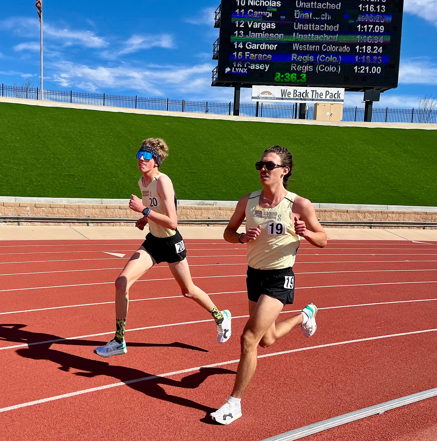 The other runner turned out to be Mateo Luna of Colorado Christian University. He had run 15:09 for 10th place in the 5K. After running a great 5K he saw Harrison in the parking lot, still on the throes of his tantrum, and asked him to go on a cooldown run. Cooling down with Mateo provided the avenue for Harrison to reset. It was a very kind gesture of empathy and turned the day around for Harrison and everyone around him.