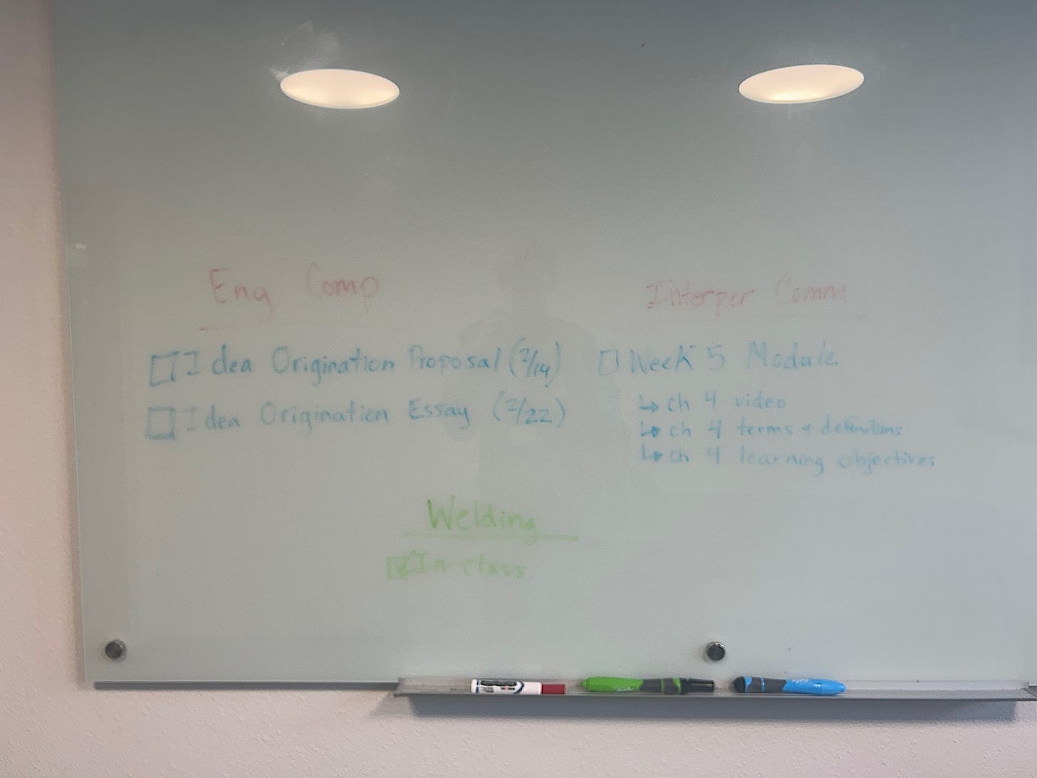 Since I was there on Monday mornings anyway, I decided to try mitigating this as much as possible by helping him get to and from the shop. Typically I would walk with him to the shop and carry his bucket, which had grown quite heavy with “coupons,” scrap metal, and other metalwork projects. Then I would meet him after class to help get his gear safely back to his room. This also allowed me to check in With Geoff and Charlie, the welding profs.