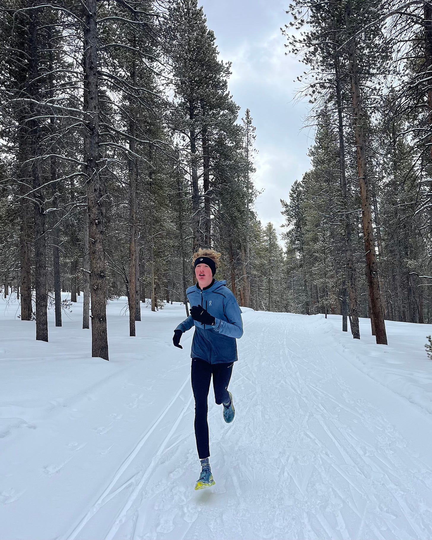 It had snowed overnight and there was still a light sprinkling sifting down through the trees along the CMC trail system. It was workout day, and Darren also had two women recruits visiting. The workout was mile-repeats on the groomed snow of the fit loop. Darren asked me to time runners on their loops while he gave the recruits a quick tour of the trail system.